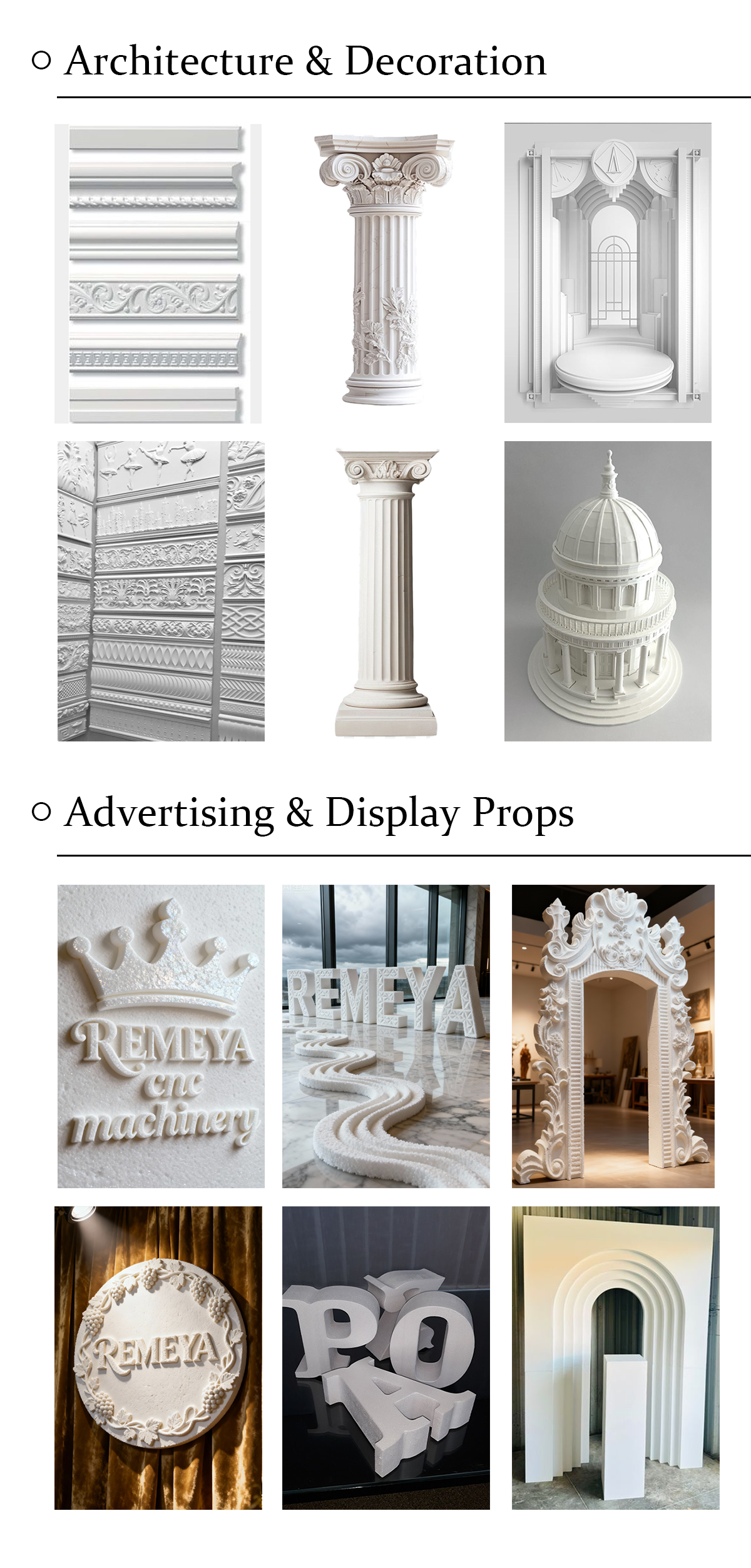 REMEYA Large CNC Foam Router is a heavy-duty and high-precision machining center for heavy-duty 3D carving and high-volume material milling. This heavy-duty machine is especially suitable to handle huge foam prototypes, architectural models, sculptures, and molds with an excellent capability to process workpieces of 3-5 tons in size and having a large working area of 1000mm in diameter and 2000mm in height.