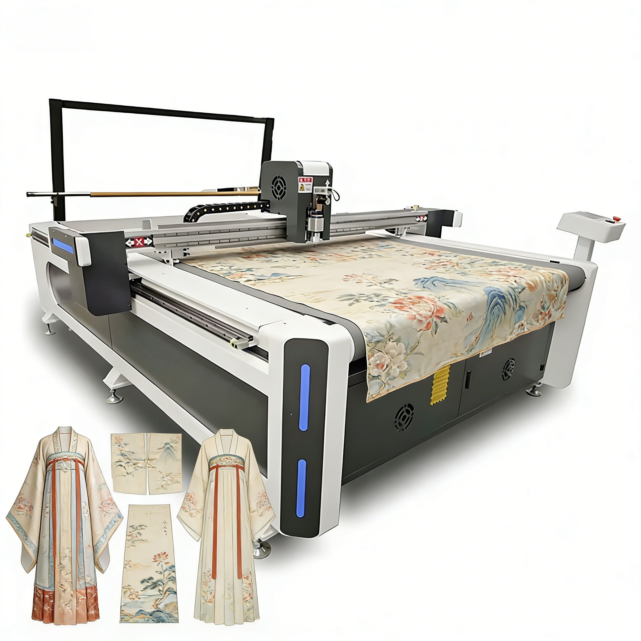 Apparel Textile Cutting Machine revolutionizes garment manufacturing with high-speed CNC precision and Swiss-engineered cutting technology. This advanced system integrates a MAXON Switzerland oscillating knife head with servo-driven motion control for clean, accurate cuts through woven fabrics, knits, denim, synthetics, and multilayer materials up to 80mm thick. The intelligent LCD touchscreen accepts designs directly from CAD and CorelDRAW software, streamlining workflow from pattern to finished piece. With ±0.05mm positioning accuracy and cutting speeds up to 78 meters per minute, this Apparel Textile Cutting Machine delivers the efficiency modern garment production demands. The high-flow vacuum table secures materials during processing, while fully customizable configurations adapt to your specific production requirements for increased productivity and reduced fabric waste .