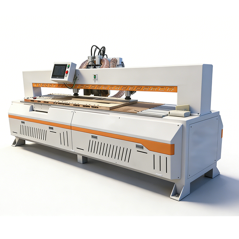 Wood Boring Machine revolutionizes door and furniture manufacturing with advanced multi-spindle CNC technology. This specialized system integrates four powerful spindles (3.7KW + three 2.2KW) with precision servo drives for clean, accurate drilling through solid wood, MDF, plywood, and engineered panels. The intelligent 10-inch touchscreen control accepts designs directly from CAD software, streamlining workflow from pattern to finished component. With ±0.05mm positioning accuracy and 2800mm effective travel, this Wood Boring Machine delivers the efficiency modern woodworking shops demand. The automatic thickness sensor and precision rack-and-pinion transmission ensure consistent quality across every job, while fully customizable configurations adapt to your specific production requirements for increased productivity and reduced material waste
