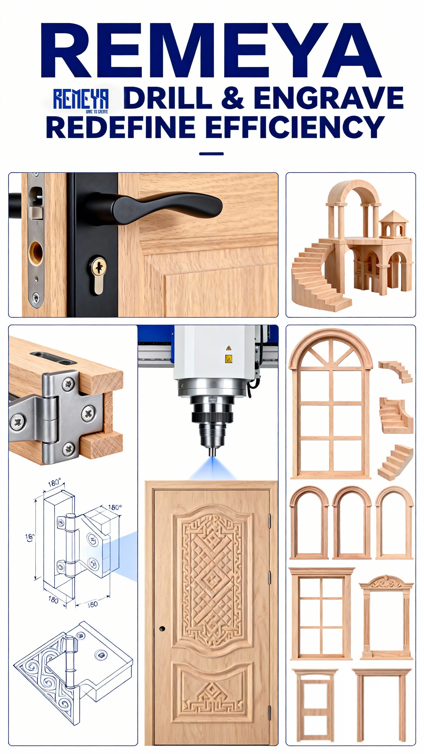 The woodworking industry faces increasing demands for precision, speed, and versatility in door and furniture manufacturing. Lock holes, hinge recesses, door closer slots, handle holes, and assembly dowels all require flawless drilling to meet modern quality standards and production deadlines . Traditional single-spindle boring machines and manual drilling methods create bottlenecks, limit design complexity, and generate inconsistent results that lead to assembly problems and customer complaints. The REMEYA Wood Boring Machine eliminates these limitations with advanced multi-spindle CNC technology engineered specifically for door manufacturers, cabinet shops, and furniture producers.